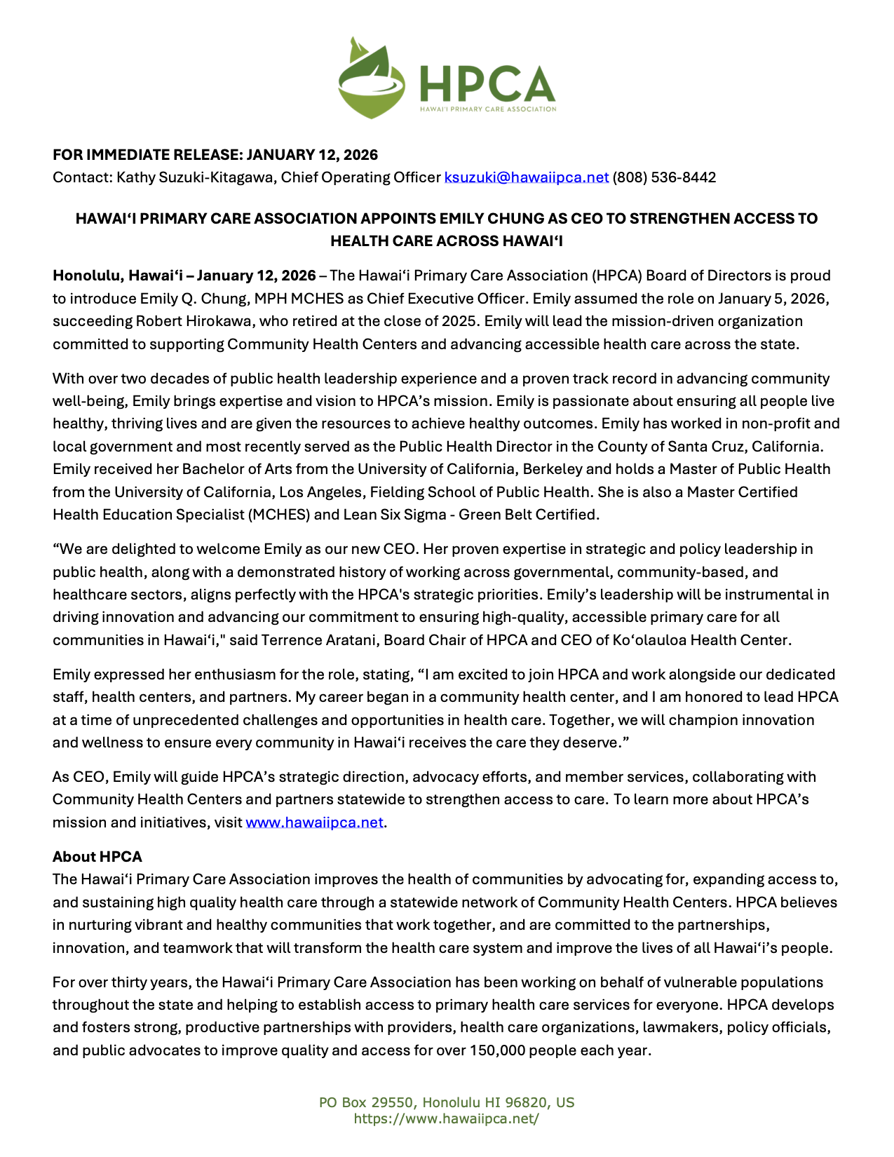 Chief Executive Officer, Hawai‘i Primary Care Association