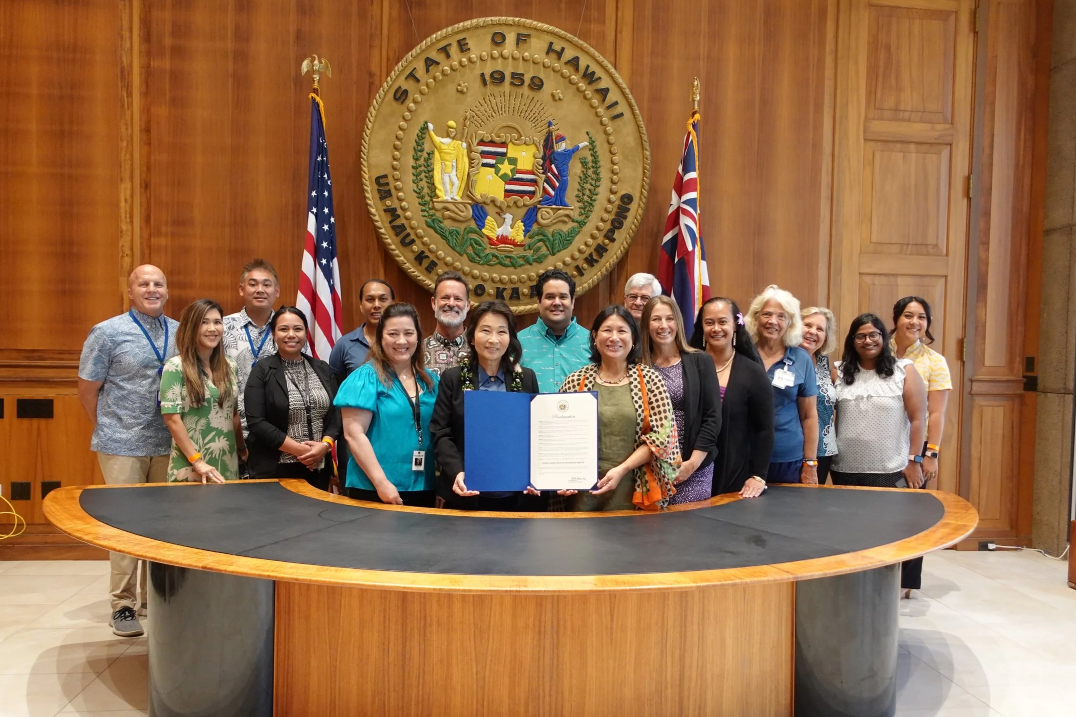Pictured: Our FQHC partners alongside Lieutenant Governor Sylvia Luke in celebration of School-Based Health Awareness Month (February 2025), as we proudly receive the official proclamation for this momentous occasion. This recognition highlights the vital role that school-based health centers play in increasing access to care for Hawaiʻi’s keiki and reaffirms our collective commitment to supporting student health, wellness, and academic success across the state.